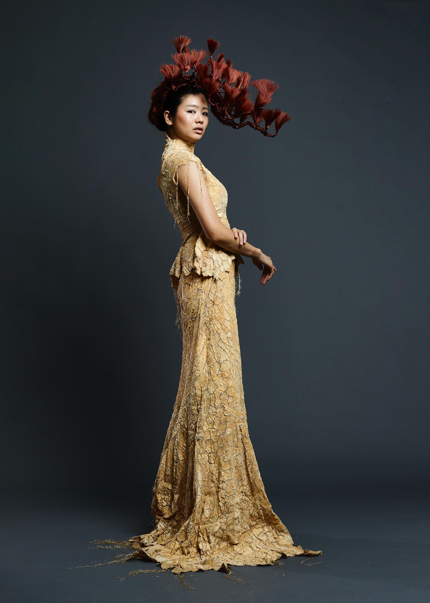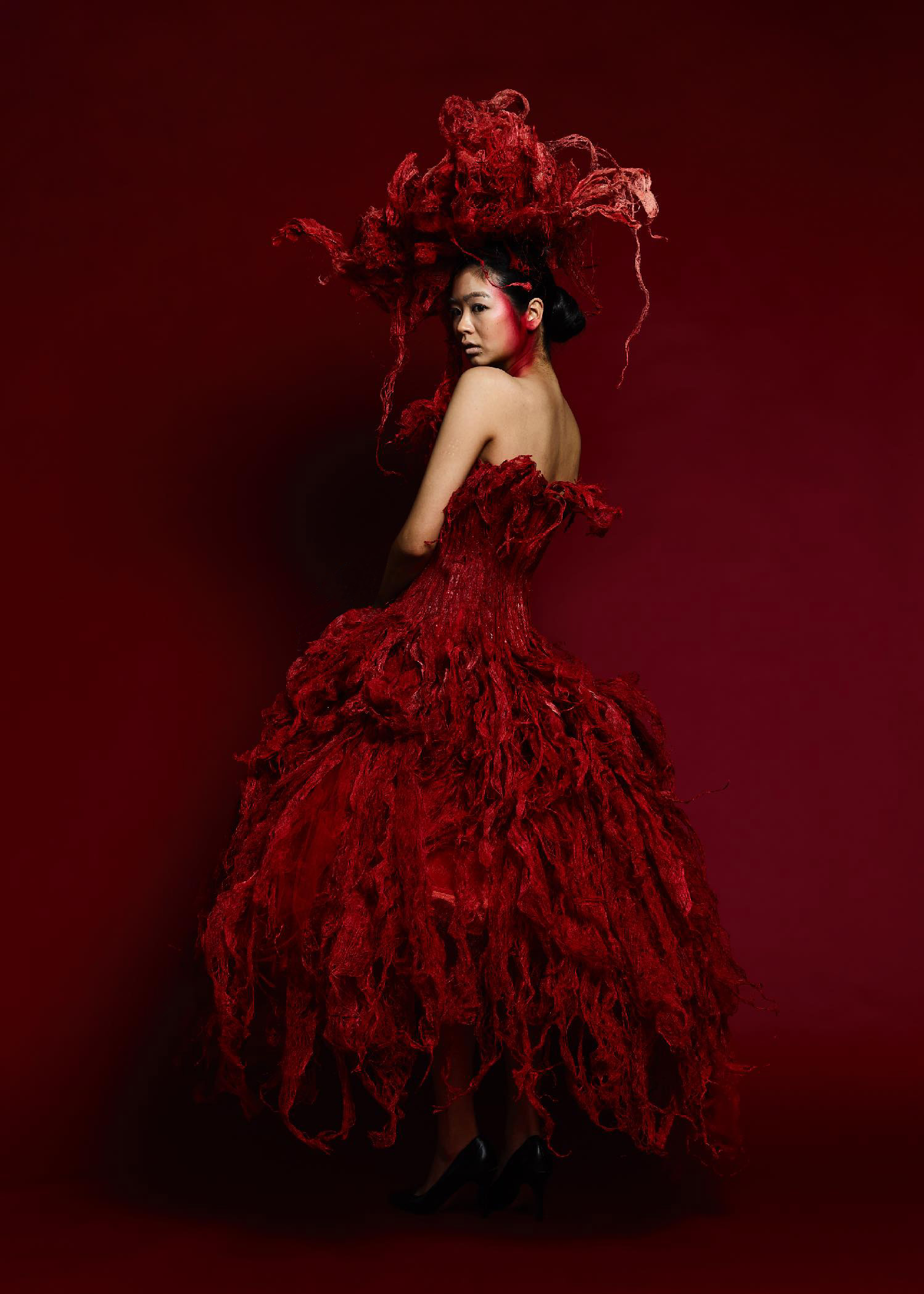 さまざまな素材との出会いを繰り返し、自由な視点で衣装を製作する。